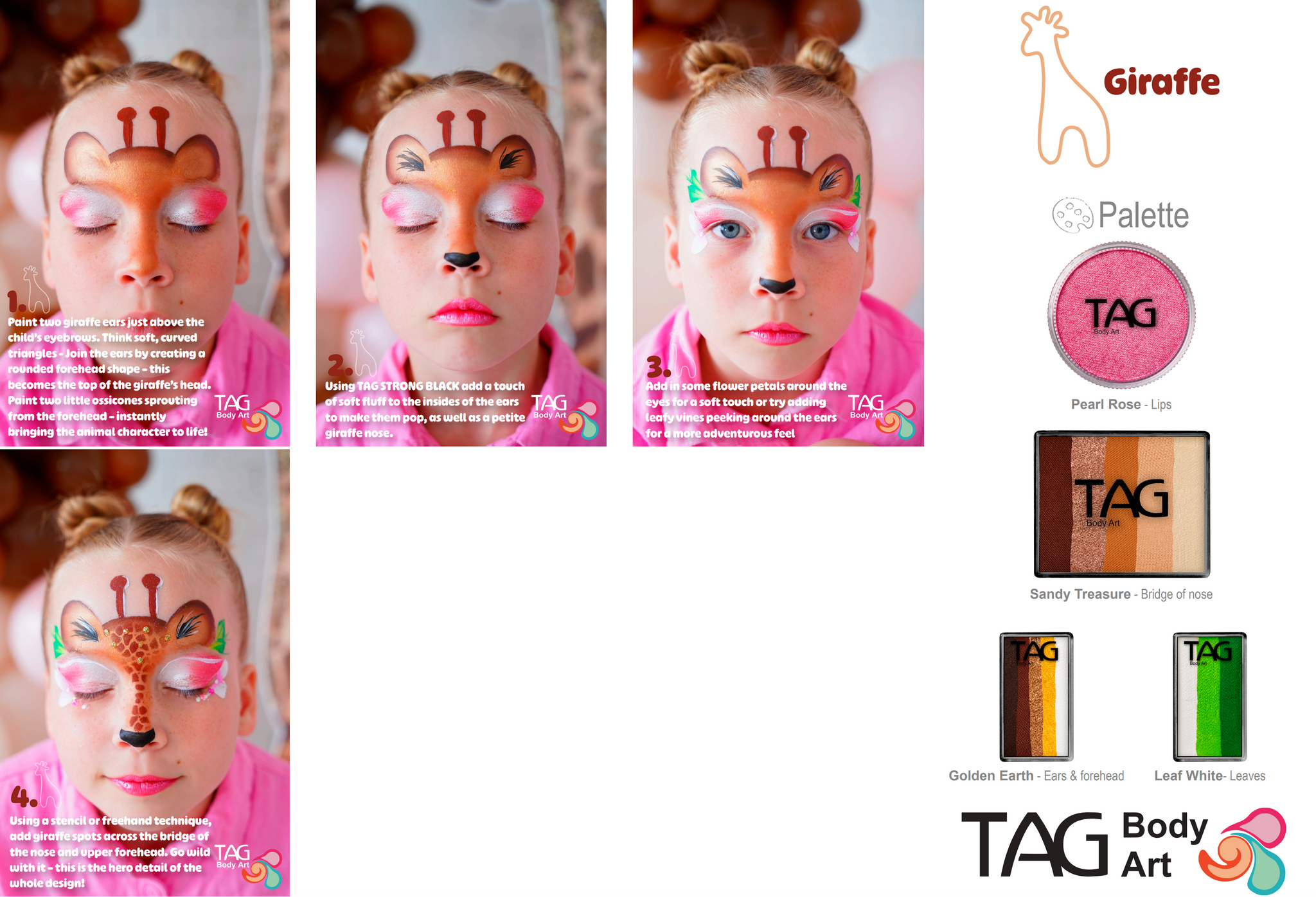 This adorable giraffe face paint is a crowd-pleaser and super easy to master.