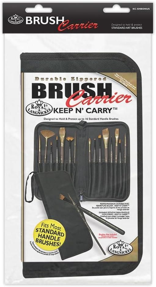 The Keep N' Carry™ brush carrier, by Royal & Langnickel, provides a convenient and secure place to store your standard handle brushes. This compact and durable carrier has a zippered closure and a wrist strap for convenient carrying.