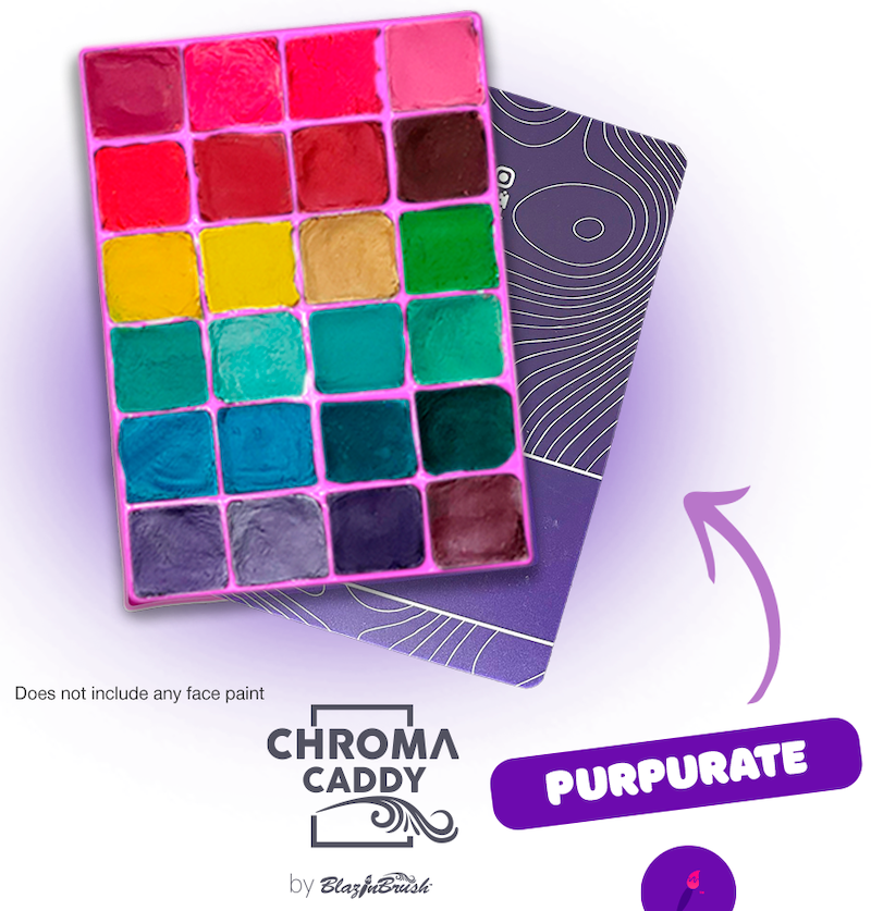 Chroma Caddy is a container which allows you to store up to 24 solid face paint colours in just one silicone palette.
