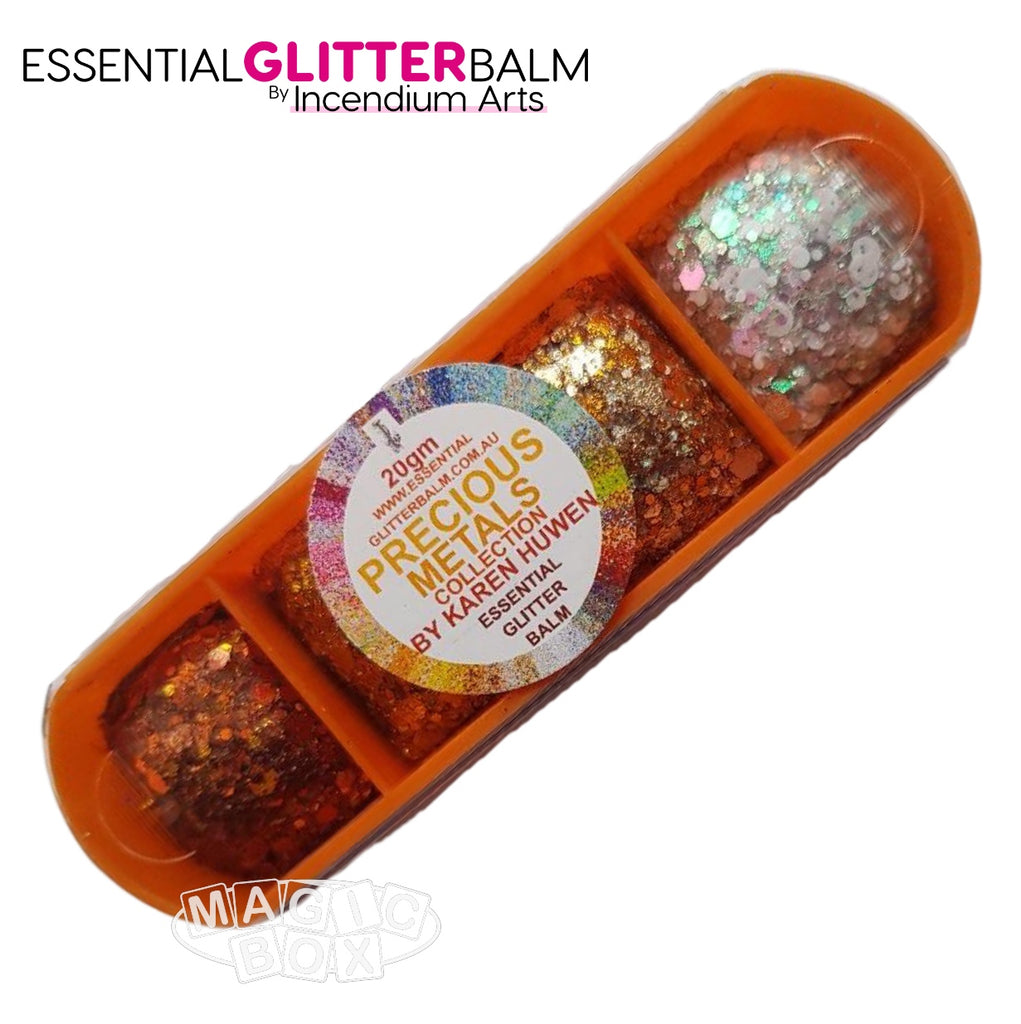 Our Glitter Balm Palettes are similar to a thick waxy lip balm, with the main ingredient being glitter, they are densely packed with tons of gorgeous chunky glitters.