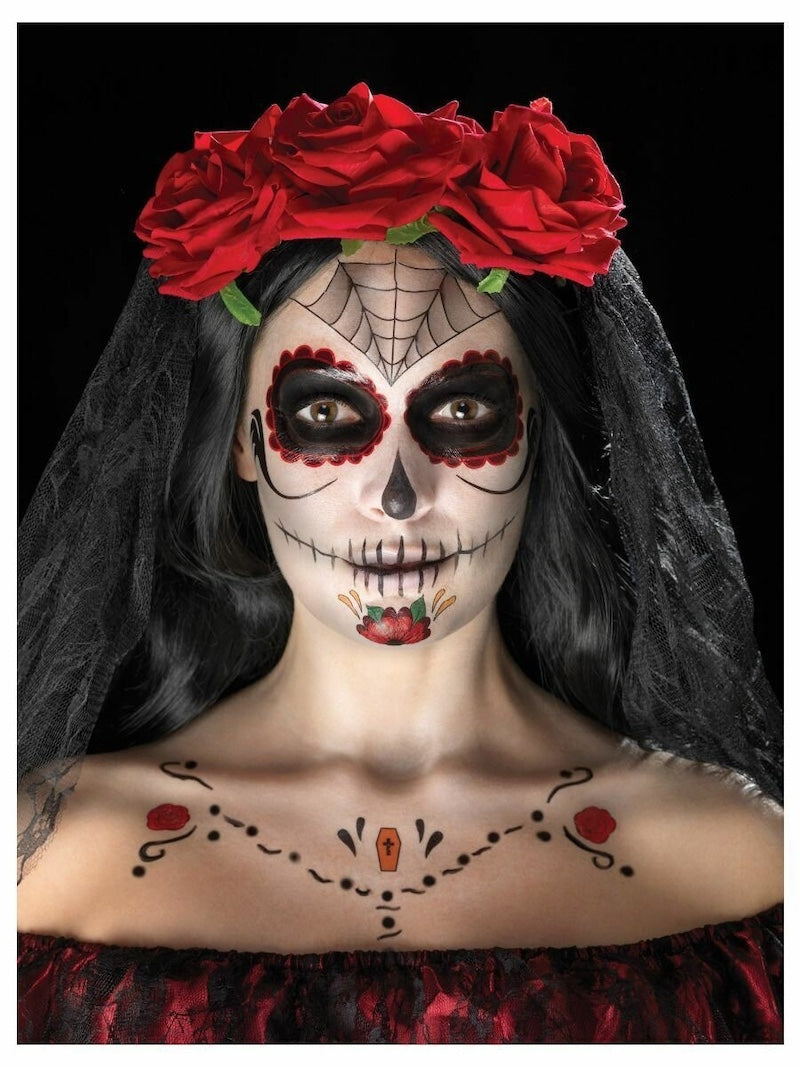 Embrace the vibrant spirit of the Day of the Dead with this Face Tattoo Transfers Kit.