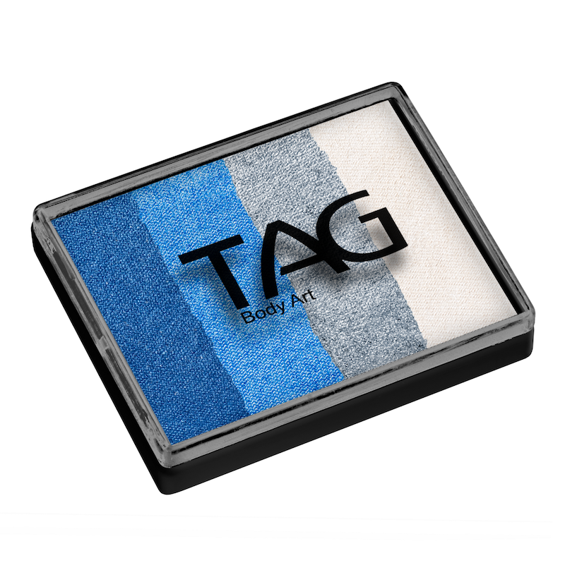 Our Iridescent Sky, 50g Split Cake by Tag Body Art are water based body paints that have tremendous covering power making them very economical for use in professional face painting.