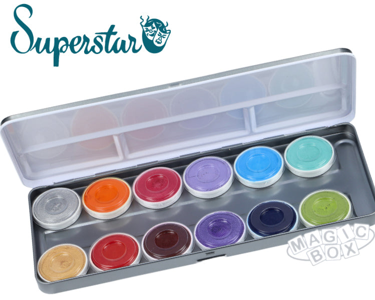 Our Superstar Syllie Faces x 12 colour palette, by award winning body painter Syl Verberk contains her favourite superstar colours.