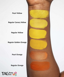 As way of trying new Tag Body Art colours, we have created a small group of shades within the Orange & Yellow spectrum, including Tag 4 x regular and 2 x pearl colours.